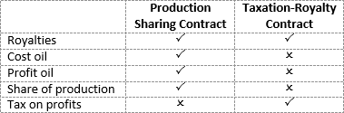 The key similarities and differences between the Production Sharing Contract and the Taxation-Royalty Contract are as follows: